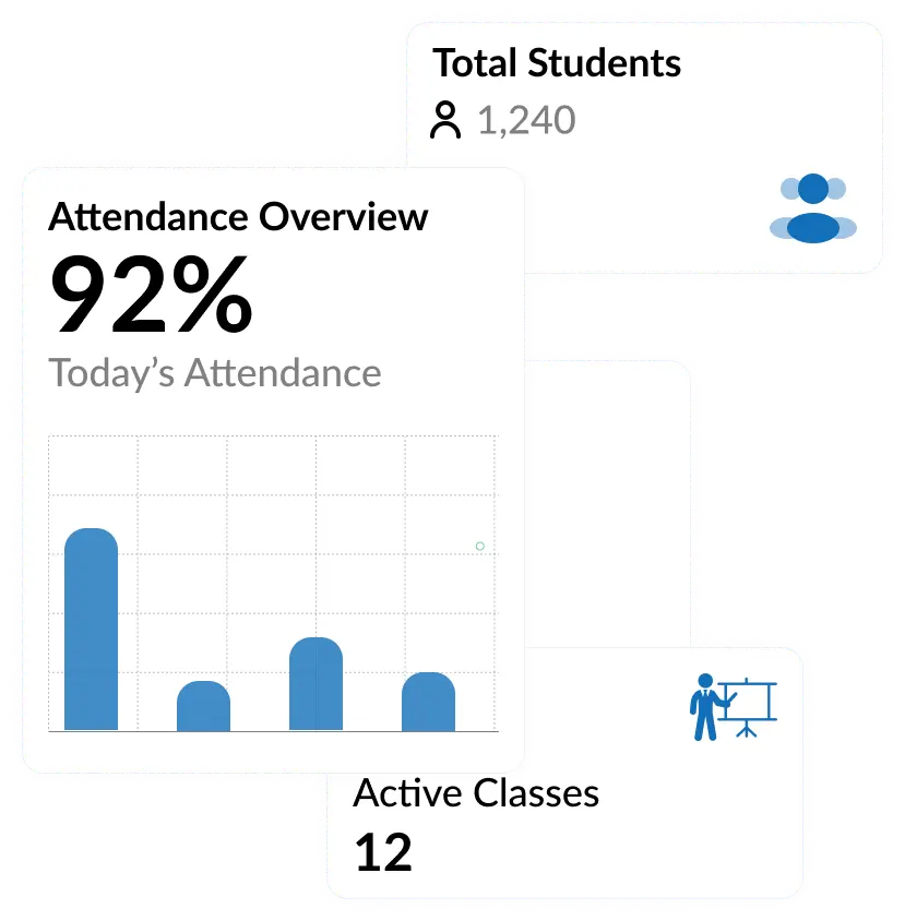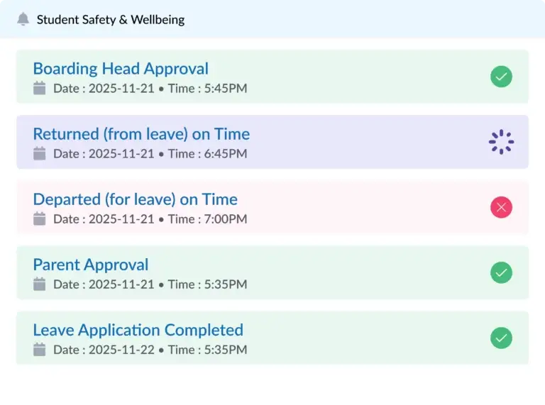 Parents can track attendance, approve permissions and receive safety alerts. Offers full visibility without operational control for peace of mind.